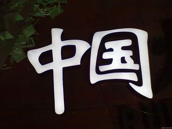 偉亮標識的師傅們在自己的車間里制作了中國兩個字的樹脂發(fā)光字,樹脂發(fā)光字面板采用的是進口亞克力板子,表面看去有弧度,整體現(xiàn)場效果非常漂亮,具備高端、大氣,又不失亮麗時尚感。
